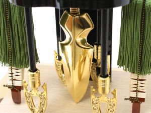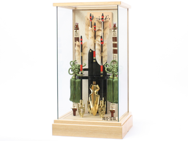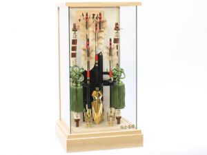 純金箔を一枚一枚丁寧に押した大きな飾り矢尻(やじり)を使った破魔弓飾りです。