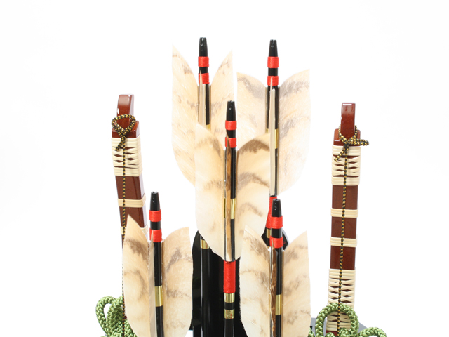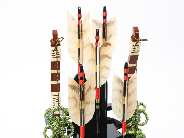 初正月では弓、矢を組み合わるのが一般的です。すべて天然の羽根を使用しています。