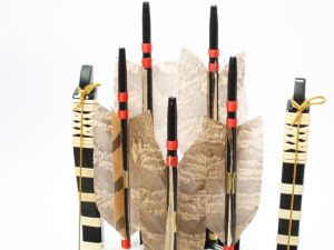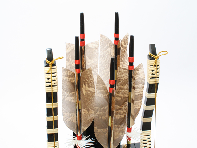 初正月では弓、矢を組み合わるのが一般的です。すべて天然の羽根を使用しています。