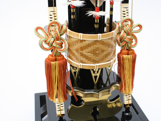 純金箔を一枚一枚丁寧に押した大きな飾り矢尻(やじり)を使った破魔弓飾りです。