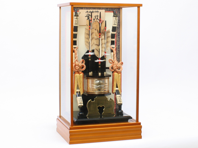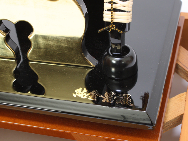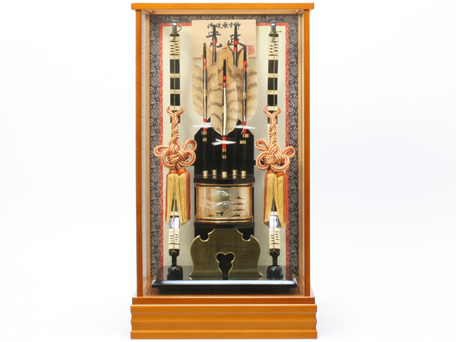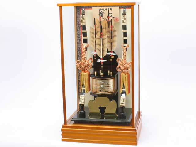 純金箔を一枚一枚丁寧に押した大きな飾り矢尻(やじり)を使った破魔弓飾りです。