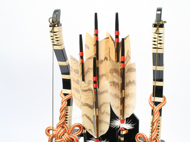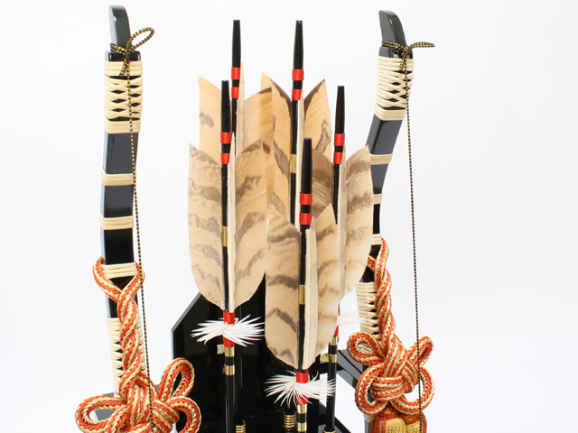 初正月では弓、矢を組み合わるのが一般的です。すべて天然の羽根を使用しています。