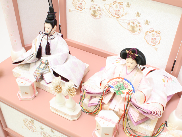 お顔はお人形の命とも言える重要なポイント。そしてお衣裳、お道具との調和も、不可欠です。雛聖のお雛様は、やさしさと品格を持った美しい卵型のお顔が特色。その穏やかな表情は見ているだけで心和みます。