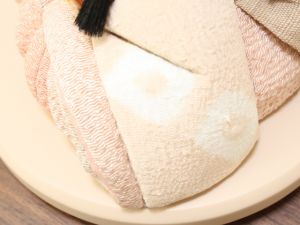 ◇木目込人形の胴体は、昔からの伝統技法を守り、桐塑(とうそ:桐の粉)を固めて作られたものを使用しています。筋目を入れた胴体に生地を埋め込んで作ります。縫nuiのお顔を引き立てる、山なりで可愛い造形美が魅力です。