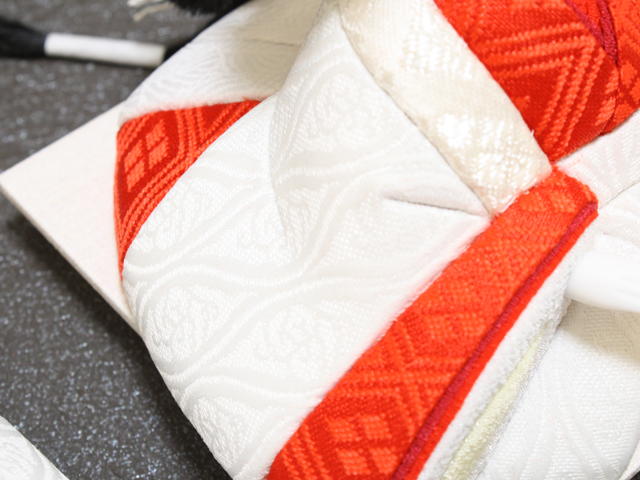 江戸木目込人形とは、今より遡ること300年前の江戸時代に京都より江戸に伝わった日本の人形の代表的な種類の1つです。 木彫り、または桐塑(とうそ)などで作った胴体部分に、裂地(きれじ)を貼り付けて、衣裳を着ているように見せる人形です。 胴体に彫った溝に、裂地の端を埋め込んで胴体と裂地を密着させ、頭(かしら)・手は別に作り、後から差し込みます。 溝に裂地を埋め込むことを「木目込む(きめこむ)」というところから、木目込人形(きめこみにんぎょう)という名で呼ばれ親しまれています。