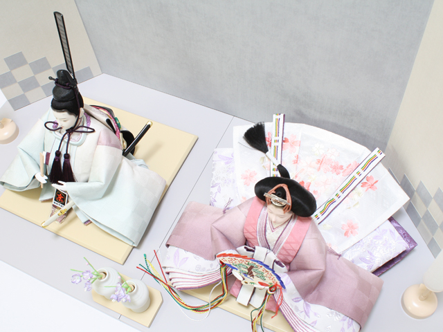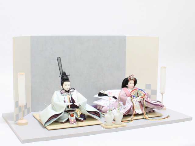 雛人形|ひな人形|初節句|コンパクト|おしゃれ|モダン|インテリア|プレミアム|こだわり|おすすめ|作家|《商品名》衣装着親王飾り 平安天鳳作 本着せ 京12番 京染帯〔商品コード〕32212-0402〔品番〕T7-12-402 〔台屏風セット〕33322-0113 市松柄 紫