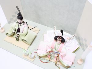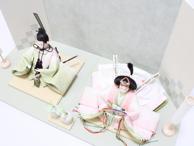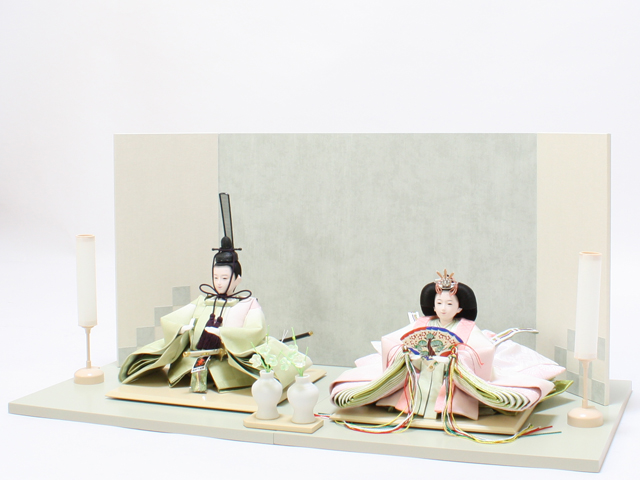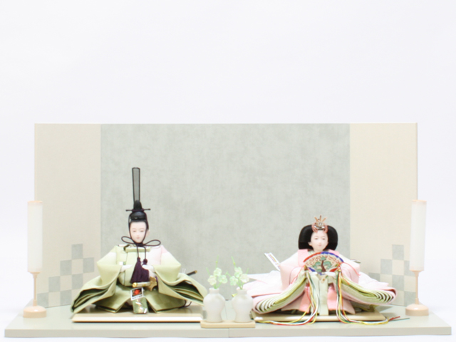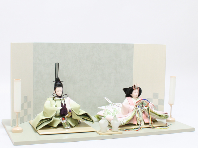 雛人形|ひな人形|初節句|コンパクト|おしゃれ|モダン|インテリア|プレミアム|こだわり|おすすめ|作家|《商品名》衣装着親王飾り 平安天鳳作 本着せ 京12番 京染帯〔商品コード〕32212-0403〔品番〕T7-12-403 〔台屏風セット〕33322-0114 市松柄 緑