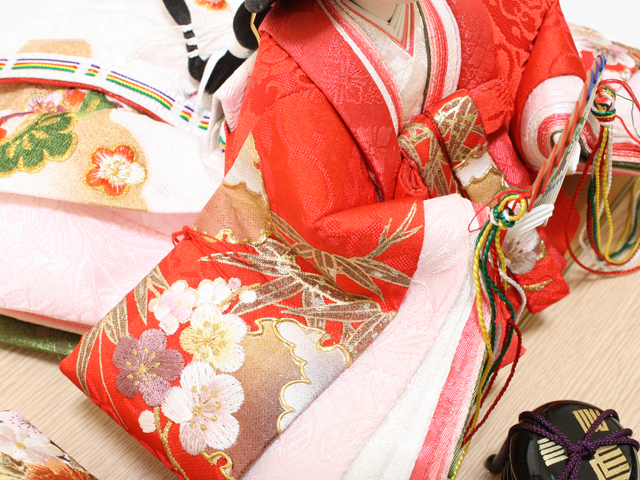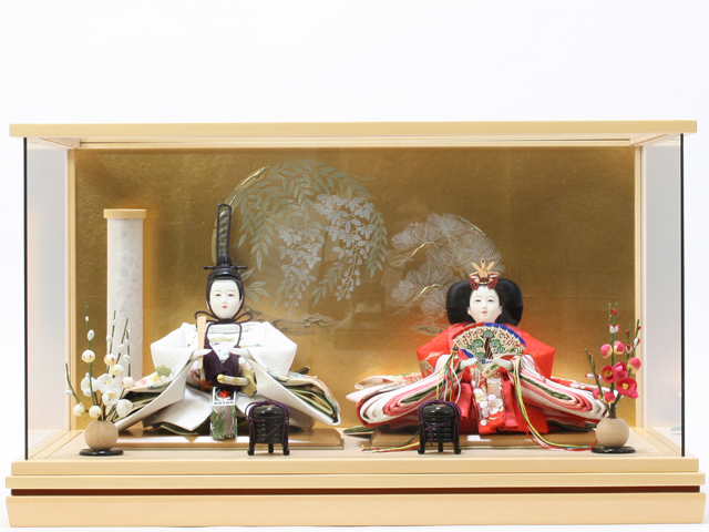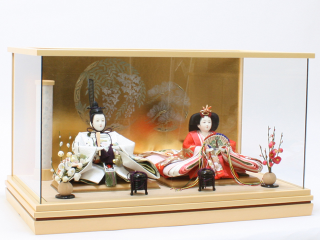 現在主流の「固定式ケース飾り」については「ほこり」に強い他にも、人形やその他のお道具が固定されている為、飾付の手間がいらない・お子様にいたずらされない事などもメリットとされています。(近年はアクリルケースも増加しています)
