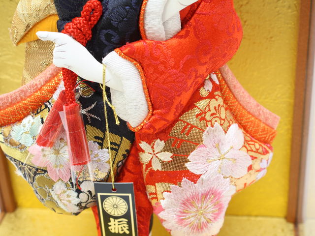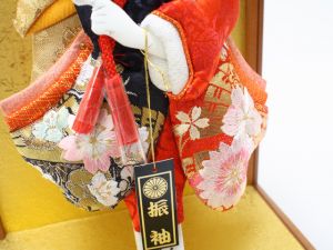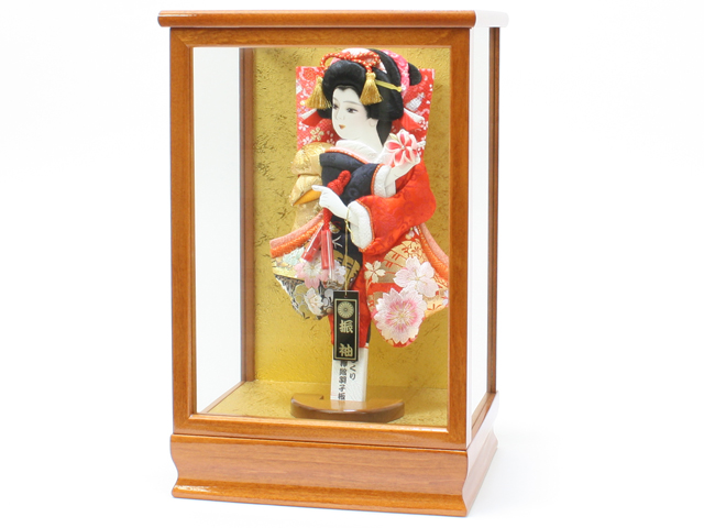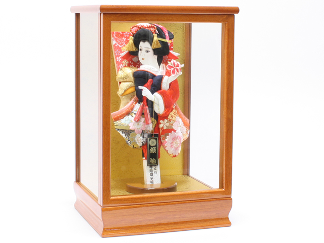 羽子板飾り《商品コード》10308-0119 D 振袖金襴 刺繍 紺赤 10408-0015 621121 羽子板ケース 8号ケヤキ|初正月|省スペース|おしゃれ|モダン|コンパクト|江戸押絵羽子板|無病息災|邪気払い|無患子