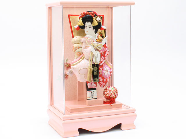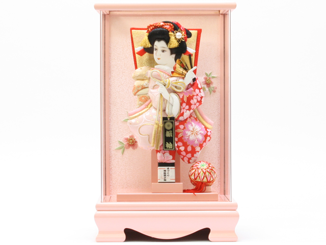 羽子板飾り《商品コード》10308-0163 C 花振袖 10408-0009 621190 羽子板ケース アクリルピンク|初正月|省スペース|おしゃれ|モダン|コンパクト|江戸押絵羽子板|無病息災|邪気払い|無患子