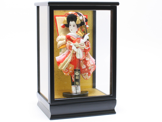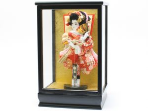羽子板飾り《商品コード》10308-0163 C 花振袖金襴 10408-0014 621120 羽子板ケース 8号黒|初正月|省スペース|おしゃれ|モダン|コンパクト|江戸押絵羽子板|無病息災|邪気払い|無患子