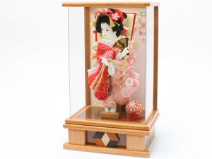 羽子板飾り《商品コード》10310-0127 A 振袖金襴 かのこ赤 10408-1187 621187 羽子板ケース アクリル杏|初正月|省スペース|おしゃれ|モダン|コンパクト|江戸押絵羽子板|無病息災|邪気払い|無患子