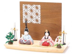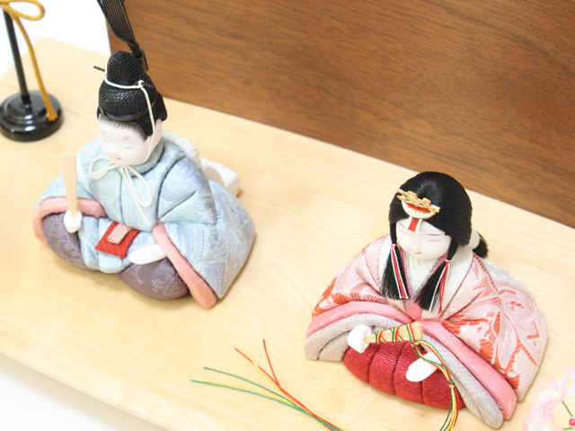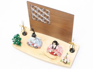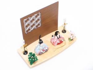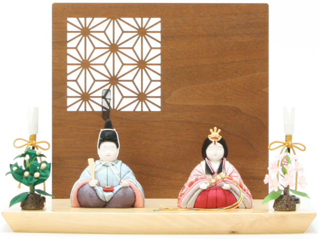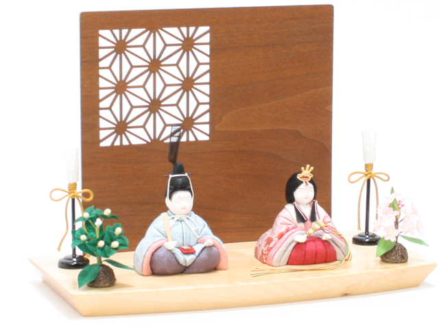 雛人形|ひな人形|初節句|コンパクト|おしゃれ|モダン|インテリア|プレミアム|こだわり|おすすめ|《商品名》〔商品コード〕31000-0011-2 【品名】木目込み飾り 彩香 正絹 博多織 青桃 〔商品コード〕33310-4830 ウッドステージ(バーチ) スクエア 麻の葉 |