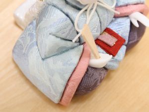 雛人形|ひな人形|初節句|コンパクト|おしゃれ|モダン|インテリア|プレミアム|こだわり|おすすめ|《商品名》〔商品コード〕31000-0011-2 【品名】木目込み飾り 彩香 正絹 博多織 青桃 〔商品コード〕33310-4830 ウッドステージ(バーチ) スクエア 麻の葉